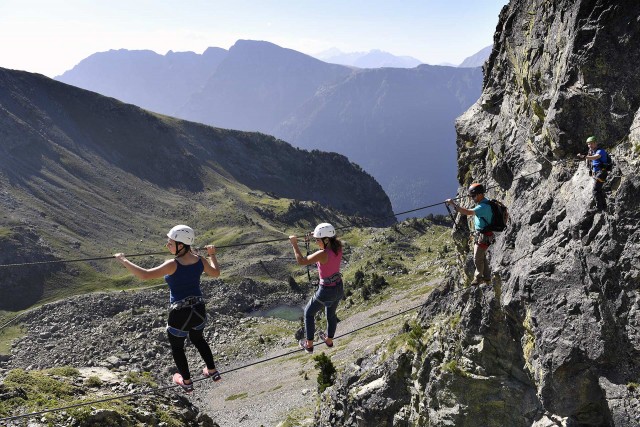 Allez-vous préférer la via ferrata « des 3 fontaines » dont l’itinéraire en traversée est agrémenté d’un pont de singe et d’un pont népalais ? Ou le parcours plus sportif de la via ferrata des Lacs Roberts aménagé à la verticale dans la paroi rocheuse qui surplombe les eaux scintillantes ?